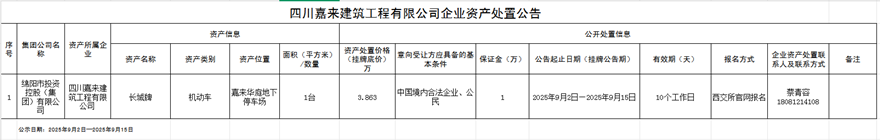 四川嘉來建筑工程有限公司企業(yè)資產處置公告