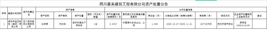 四川嘉來(lái)建筑工程有限公司資產(chǎn)處置公告