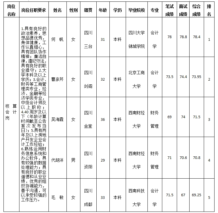 根據綿陽市嘉遠瑞華房地產開發(fā)有限公司發(fā)布的招聘公告及招聘相關規(guī)定,經筆試、面試等程序,現將筆試、面試成績予以公示。