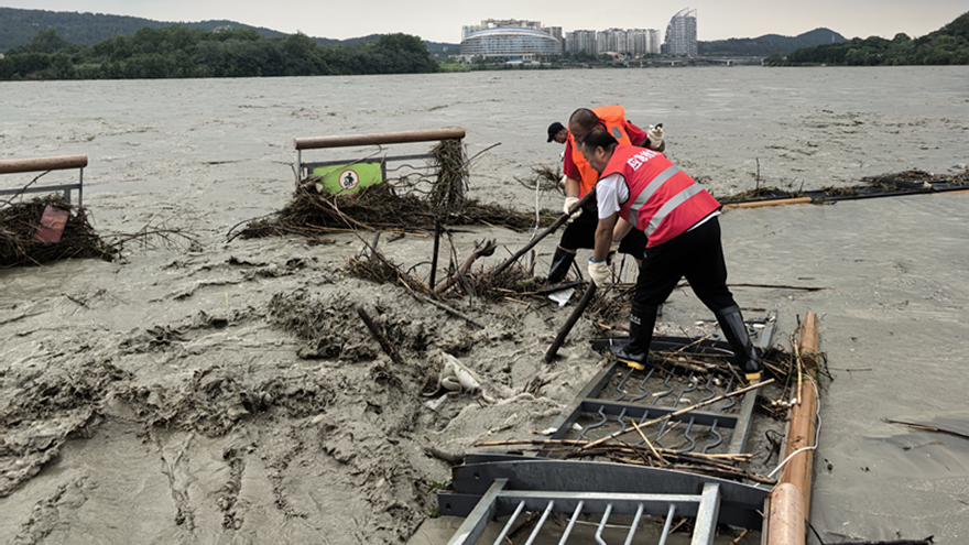 連日暴雨,上游洪峰裹挾漂浮物洶涌而下。危急時(shí)刻,綿陽三江半島景觀廊橋的圍欄在短短30分鐘內(nèi)被快速放倒,為洪水開辟通道。近日,這一高效處置場景獲央省媒體聚焦報(bào)道。背后,是越王樓公司作為國企,七年如一日守護(hù)城市安全的用心與智慧。